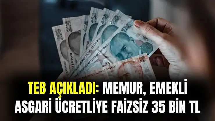 - Türkiye Ekonomi Bankası açıkladı: memur, emekli ve asgari ücretliye faizsiz 35 bin TL ödeme